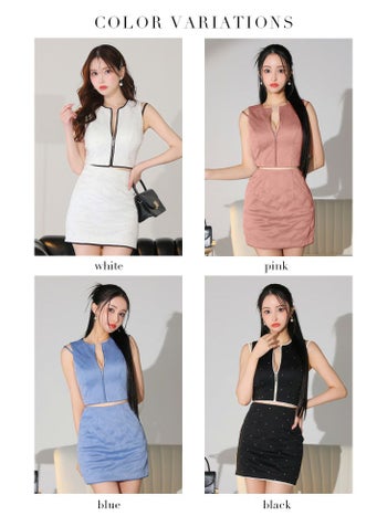 4. SALE【Glossy by ROBE de FLEURS/グロッシー】ツイル ノースリーブ セクシー パイピングビジュー セットアップ ジップデザイン タイトミニドレス(GL3536)