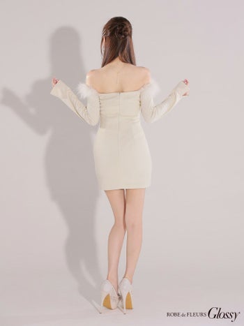 キャバドレス ミニドレス Glossy by ROBE de FLEURS グロッシー 2way オフショルダー ファー ジップデザイン リブニット セクシー 長袖 タイトミニドレス