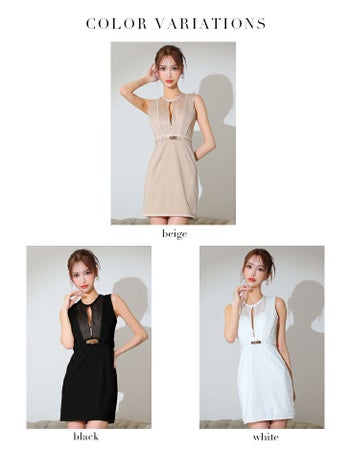 4. 【Glossy by ROBE de FLEURS/グロッシー】ジップデザイン デコルテメッシュ ノースリーブ ベルトデザイン セクシー タイトミニドレス(GL3723)