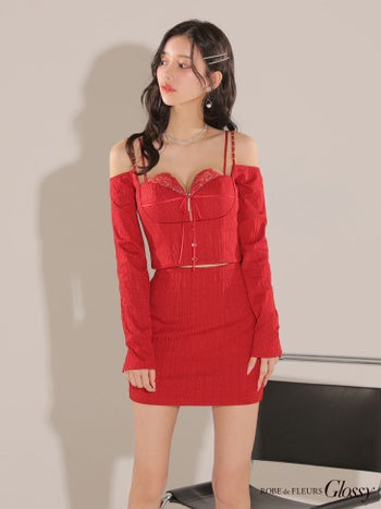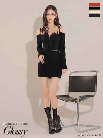XSあり!レースデザインがsexy☆ SALE【Glossy by ROBE de FLEURS/グロッシー】セクシー オープンバスト 紐リボン レース ジップデザイン キャミソール 長袖 セットアップ タイトミニドレス (GL3748)