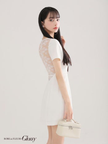 XSあり!背中の大胆な透け感がセクシー☆ 【Glossy by ROBE de FLEURS/グロッシー】セクシー ジップデザイン 半袖 ベルトデザイン バックレース フレアミニドレス (GL3795)