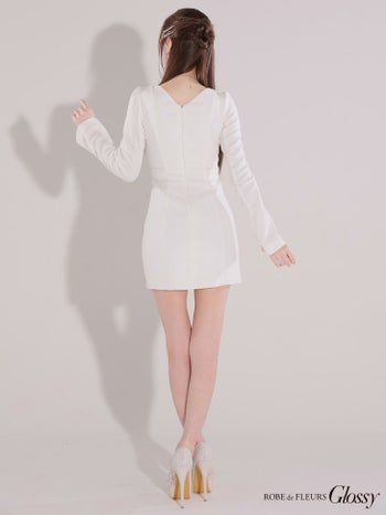 4. 【Glossy by ROBE de FLEURS/グロッシー】長袖 セクシー オープンバスト ジップデザイン レアミニドレス (GL3907)
