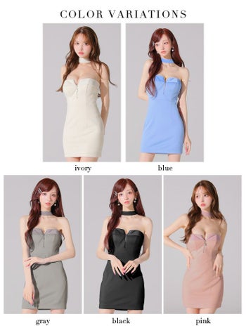 4. 【Glossy by ROBE de FLEURS/グロッシー】ジップデザイン 2way ワンカラー チョーカー風 ホルターネック タイトミニドレス(GL4108)