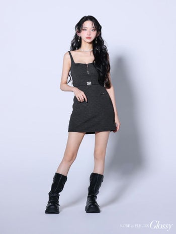 4. 【Glossy by ROBE de FLEURS/グロッシー】ジップデザイン ウエストベルト キャミソール vカット ワッフル タイトミニドレス(GL4136)