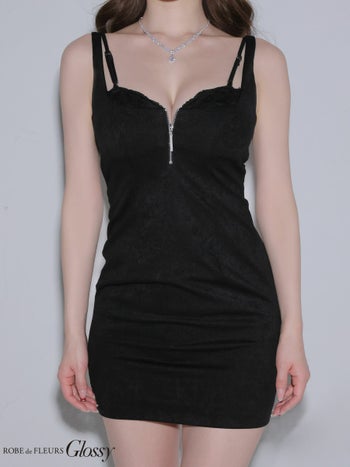 キャバドレス Glossy ROBE de FLEURS グロッシー ローブドフルール ノースリーブ バックレース セクシー ジップデザイン レース タイトミニドレス