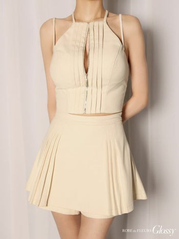 3. 【Glossy by ROBE de FLEURS/グロッシー】ジップデザイン タック セットアップ セクシー ホルターネック フレアミニドレス (GL4602)