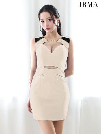 XSあり!上品で華のある女性へ♪ 【IRMA/イルマ】ウエストカット ゴールドチャーム ジップデザイン タイトミニドレス(45011)