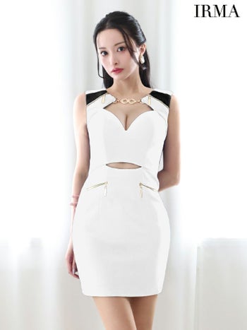 4. 【IRMA/イルマ】ウエストカット ゴールドチャーム ジップデザイン タイトミニドレス(45011)