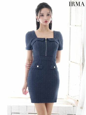 4. 【IRMA/イルマ】セクシー オープンバスト ジップデザイン 半袖 ポケットデザイン ハイウエスト 柄織ニット タイトミニドレス (51755)