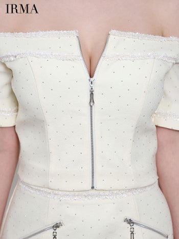4. 【IRMA/イルマ】オフショルダー セットアップ 袖あり ジップデザイン ビジュー タイトミニドレス (55057)