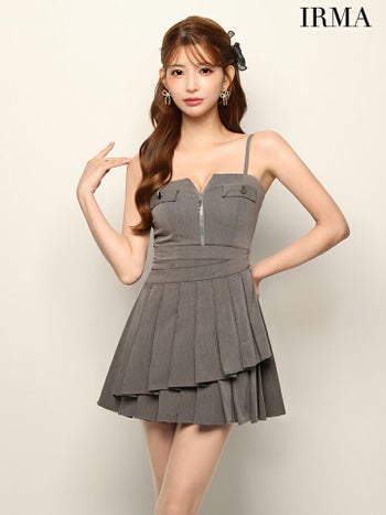 キャバドレス IRMA イルマ キャミソール ジップデザイン プリーツスカート アシンメトリー セクシー フレアミニドレス