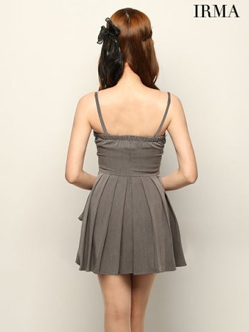 4. 【IRMA/イルマ】キャミソール ジップデザイン プリーツスカート アシンメトリー セクシー フレアミニドレス (55098)