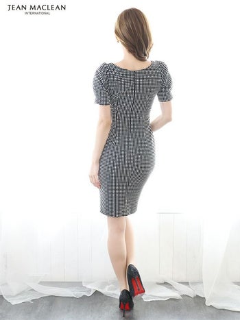 キャバドレス ブランドドレス JEANMACLEAN ジャンマクレーン フロントジップ ポケットデザイン パフスリーブ 半袖 チェック柄 ひざ丈ドレス