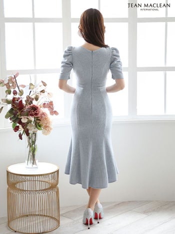 4. SALE【JEANMACLEAN/ジャンマクレーン】エレガント 袖あり ジップデザイン オープンバスト フリル 膝丈ドレス (45984)