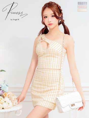 ワンショルダー パール セットアップ バストカットデザイン マイクロタイトミニドレスのメイン画像1