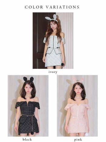 3. 【ANIER./アニエル】ジップデザイン ツイード オフショルダー バニー アニマル タイトミニドレス [ドレス/カチューシャ/チェーンベルト](anier4054)