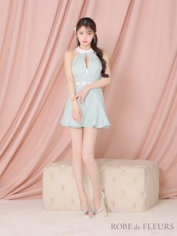 4. 【ROBEdeFLEURS/ローブドフルール】ビジュー フロントジップ セットアップ 襟付き フレアミニドレス (fm2891)