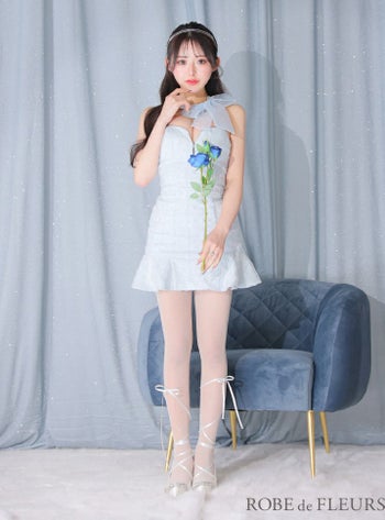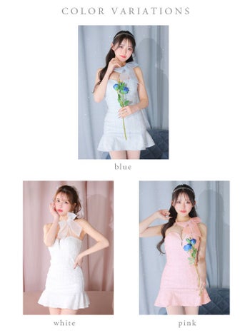 4. 【ROBEdeFLEURS/ローブドフルール】ジップデザイン フリル スパンコール オーガンジー リボンチョーカー ホルターネック セットアップ タイトミニドレス(fm3249)