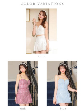 3. 【ROBEdeFLEURS/ローブドフルール】リボン スパンコール ジップデザイン キャミソール セットアップ ガーリー オープンバスト フレアミニドレス (fm3270)
