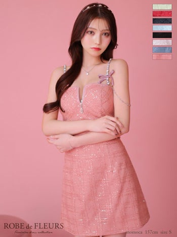 キャバドレス ROBEdeFLEURS ジップデザイン ガーリー セットアップ ビジュー リボン スパンコール キャミソール 刺繍レース ラメニット 台形スカート フレアミニドレス