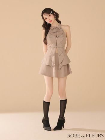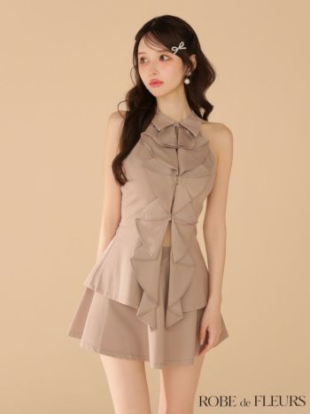 3. 予約商品【2月上旬入荷予定】【ROBEdeFLEURS/ローブドフルール】ホルターネック ジップデザイン ガーリー セットアップ フリル 襟付き フレアミニドレス (fm3468)