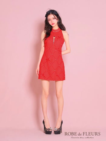3. 【ROBEdeFLEURS/ローブドフルール】バレエコア ジップデザイン スイートミニリボン ノースリーブ ワンカラー タイトミニドレス (fm3531)