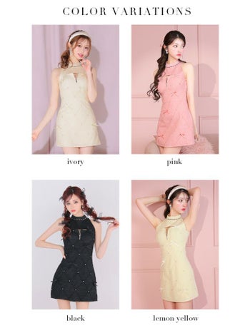 4. 【ROBEdeFLEURS/ローブドフルール】ジップデザイン スイートミニリボン ノースリーブ ワンカラー バレエコア タイトミニドレス (fm3531)