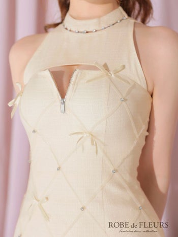 キャバドレス ROBEdeFLEURS ローブドフルール キルティング ガーリー ミニリボン ノースリーブ ジップデザイン タイトミニドレス
