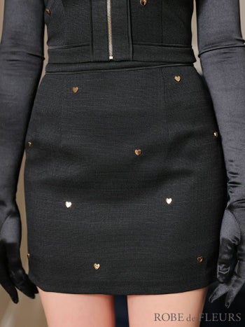 3. 【ROBEdeFLEURS/ローブドフルール】チェーン ガーリー ハートスタッズ セットアップ ジップデザイン ホルターネック タイトミニドレス (fm3751)