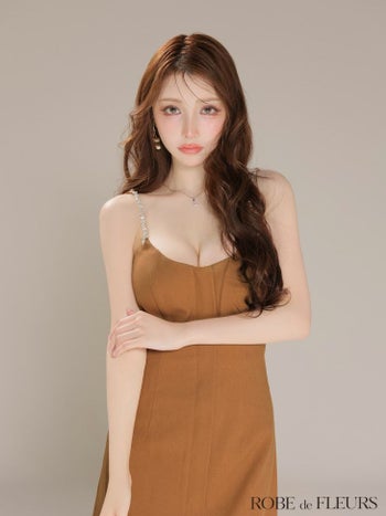 3. 予約商品【2月下旬入荷予定】【ROBEdeFLEURS/ローブドフルール】ビジュー シンプル ジップデザイン キャミソール フレアミニドレス (fm3793)
