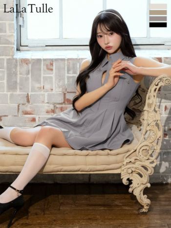 キャバドレス ROBEdeFLEURS ローブドフルール ノースリーブ 襟付き プリーツスカート ジップデザイン クラシカル フレアミニドレス