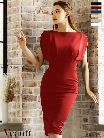 XSあり!大人の女性溢れるモダンテイストなタイトドレス♪ 【Veautt/ヴュート】モダン ノースリーブ ジップデザイン アッパーバルーン シンプル ギャザー膝丈ドレス(VT01228)