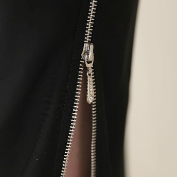 3. 【Veautt/ヴュート】オープンバストタック ネックビジュー チェーン ホルターネック ジップデザイン スリット タイト ひざ丈ドレス(VT022405)