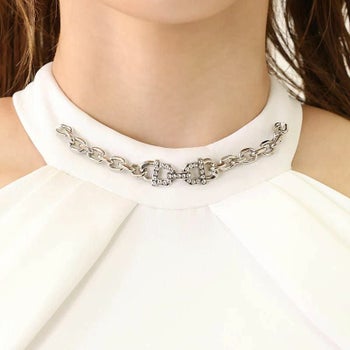 4. 【Veautt/ヴュート】シンプル ジップデザイン 肩あき チェーン ホルターネック タイト 膝丈ドレス(VT022410)