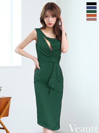 4. 【Veautt/ヴュート】ドレープデザイン ワンショルダー ジップデザイン セクシー バストカット 膝丈ドレス (VT022413)
