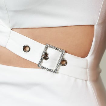 ジップデザイン オープンカラーバストクロス バックル ノースリーブ ミディアムタイト ひざ丈ドレスのイメージ画像8