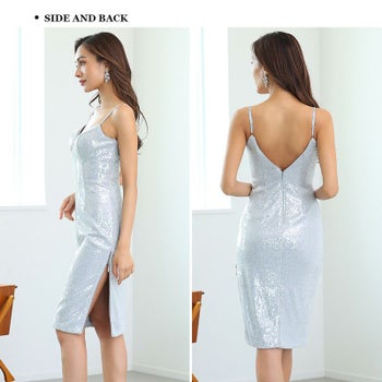 3. 【Veautt/ヴュート】スパンコール ショルダービジュー キャミソール オープンバスト ジップデザイン セクシー 膝丈ドレス (VT032407)