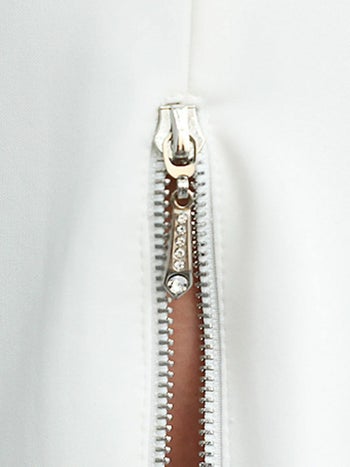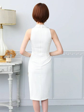 4. 【Veautt/ヴュート】セクシー ノースリーブ ジップデザイン アシンメトリー タック 襟付き ボタン 膝丈ドレス (VT032501)