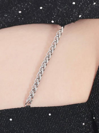 3. 【Veautt/ヴュート】ワンショルダー アシメデザイン 袖あり ラメ チェーン ジップデザイン スリット タイト 膝丈ドレス (VT032507)
