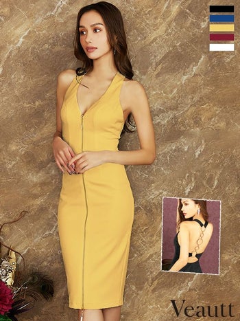 4. SALE【Veautt/ヴュート】華麗 ジップデザイン バックオープンリング ノースリーブ ひざ丈ドレス(VT05233)