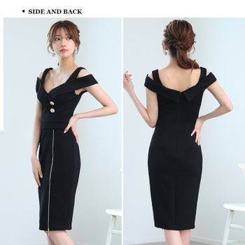 4. 【Veautt/ヴュート】セクシー ウエストマーク ボタン 肩あき ジップデザイン 膝丈ドレス (VT082410)