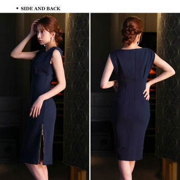 キャバドレス ブランド ノースリーブ バストタック デコルテチェーン ウエストマーク ジップデザイン セクシー 膝丈ドレス