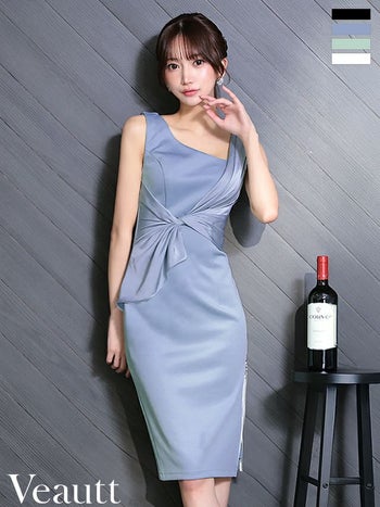 キャバドレス Veautt ヴュート エレガント ノースリーブ ドレープ ウエストタック ジップデザイン サテン 膝丈ドレス