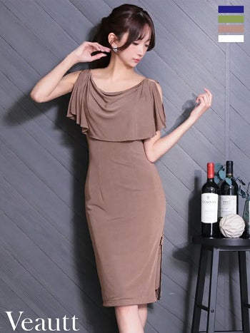 キャバドレス Veautt ヴュート ノースリーブ レイヤード チェーン ドレープ ジップデザイン エレガント 膝丈ドレス