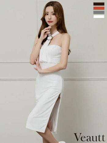 キャバドレス Veautt ヴュート リング ジップデザイン ワンカラー エレガント ホルターネック 膝丈ドレス