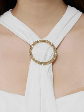 3. 【Veautt/ヴュート】リング ジップデザイン ワンカラー エレガント ホルターネック 膝丈ドレス (VT082524)