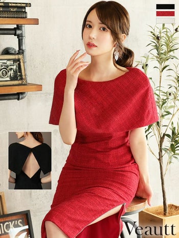 3. 【Veautt/ヴュート】フェミニン ツイードケープデザイン シンプルファスナースリット膝丈ドレス(VT11228)