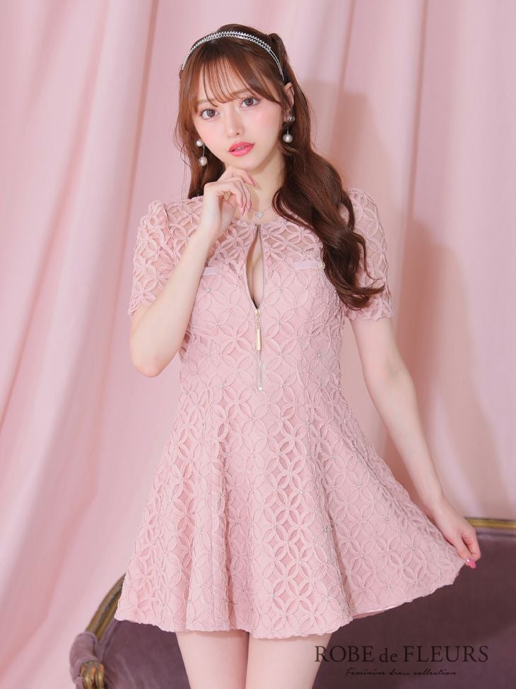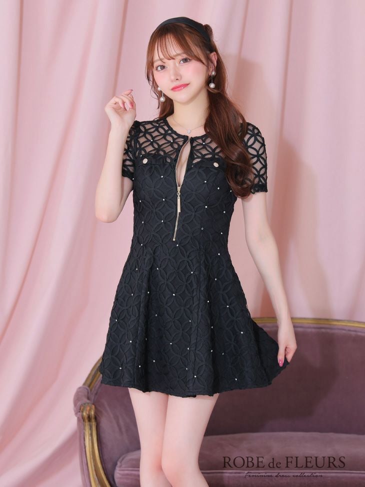 他の画像を見る XS~Lあり!高級感抜群♪ 【ROBEdeFLEURS/ローブドフルール】ジップデザイン ガーリー 半袖 レース ビジュー フレアミニドレス (fm3727) ¥ 31,680 税込 詳細を見る お気に入りに登録する