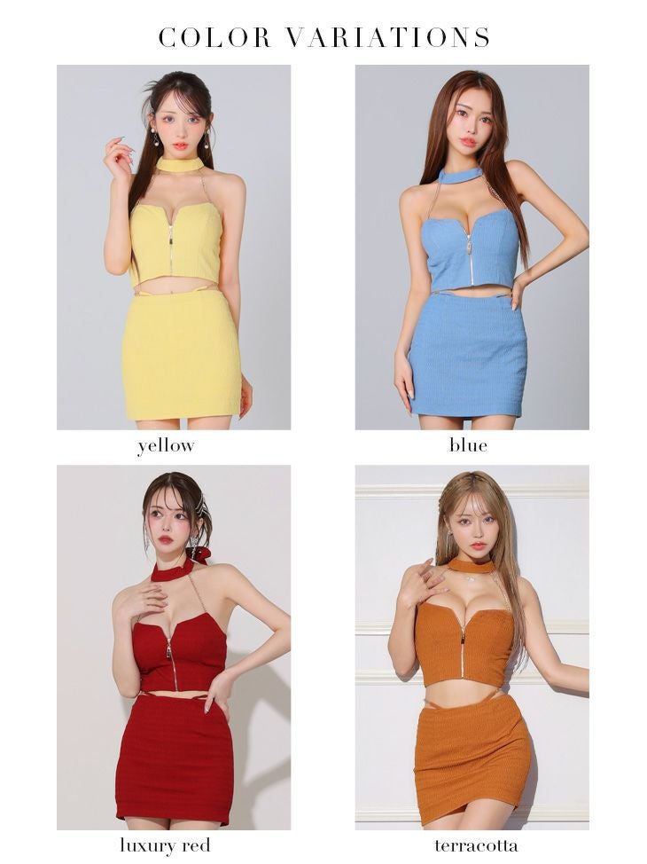 他の画像を見る XSあり!大きなリボンが可愛い☆ 【Glossy by ROBE de FLEURS/グロッシー】リボン ワンカラー ジップデザイン セットアップ セクシー オープンバスト ホルターネック チェーン タイトミニドレス(GL3332) ¥ 26,180 税込 詳細を見る お気に入りに登録する
