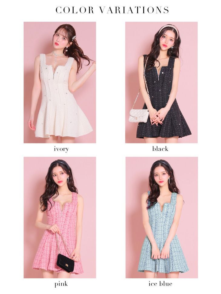 他の画像を見る XSあり!ツイード生地がcute♪ 【ROBEdeFLEURS/ローブドフルール】ツイード ビジュー オープンバスト ノースリーブ ジップデザイン ガーリー フレアミニドレス (fm3266) ¥ 29,480 税込 詳細を見る お気に入りに登録する